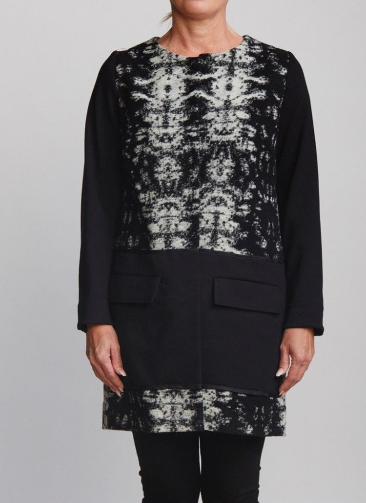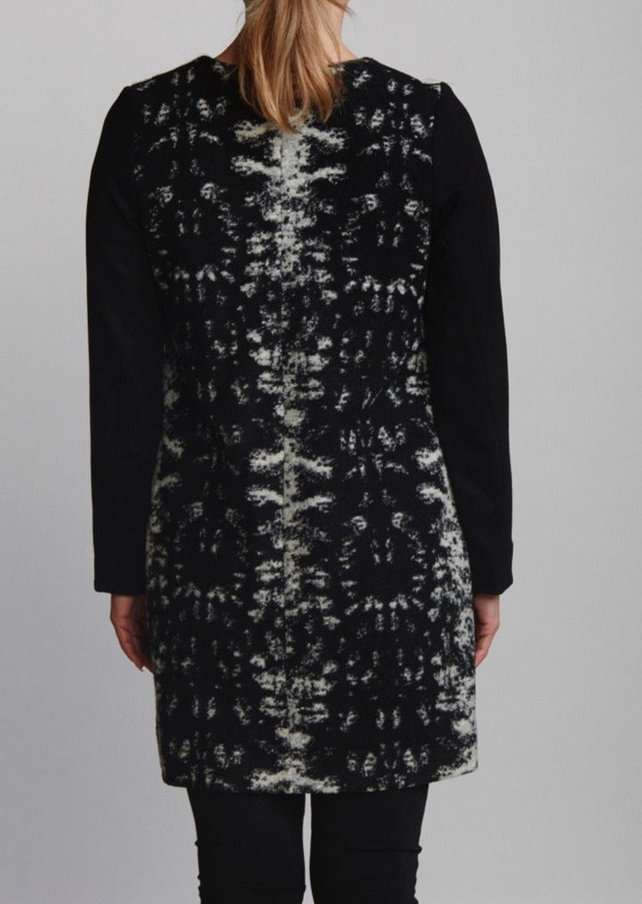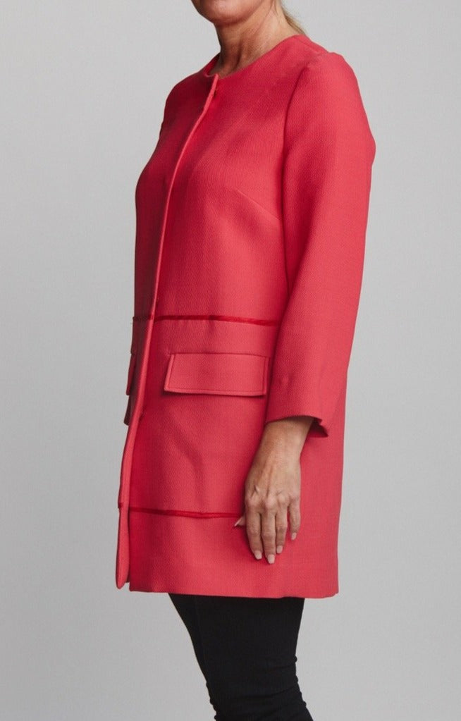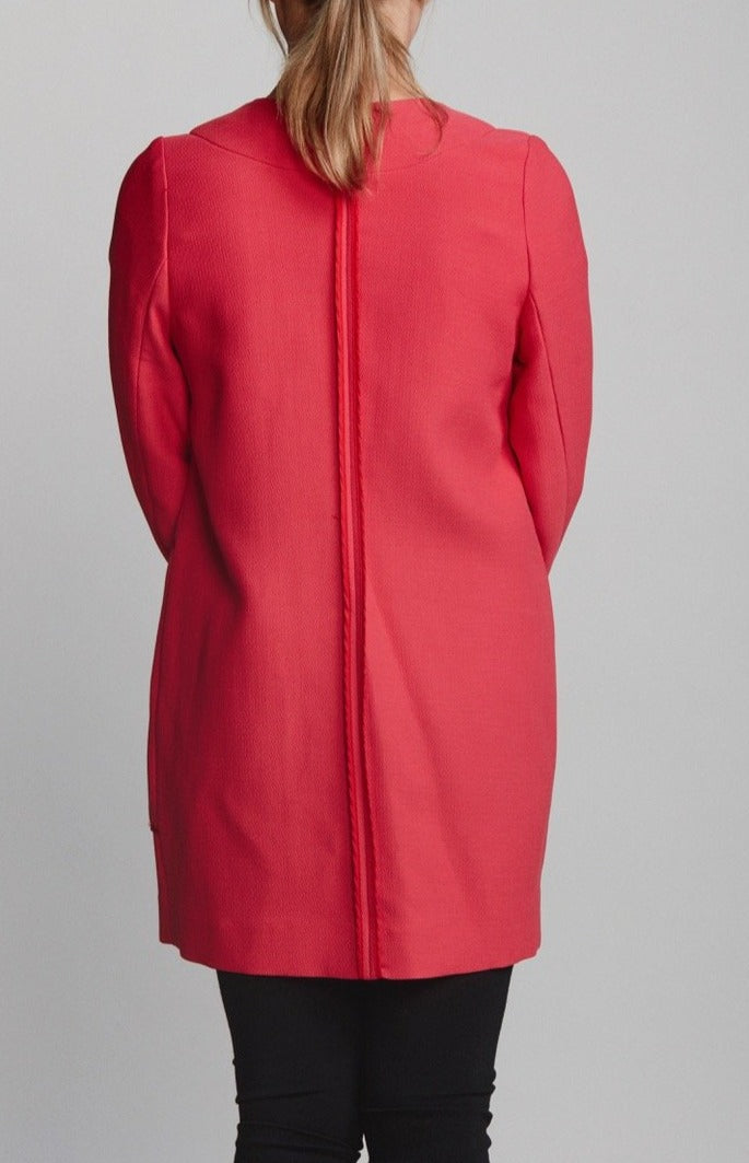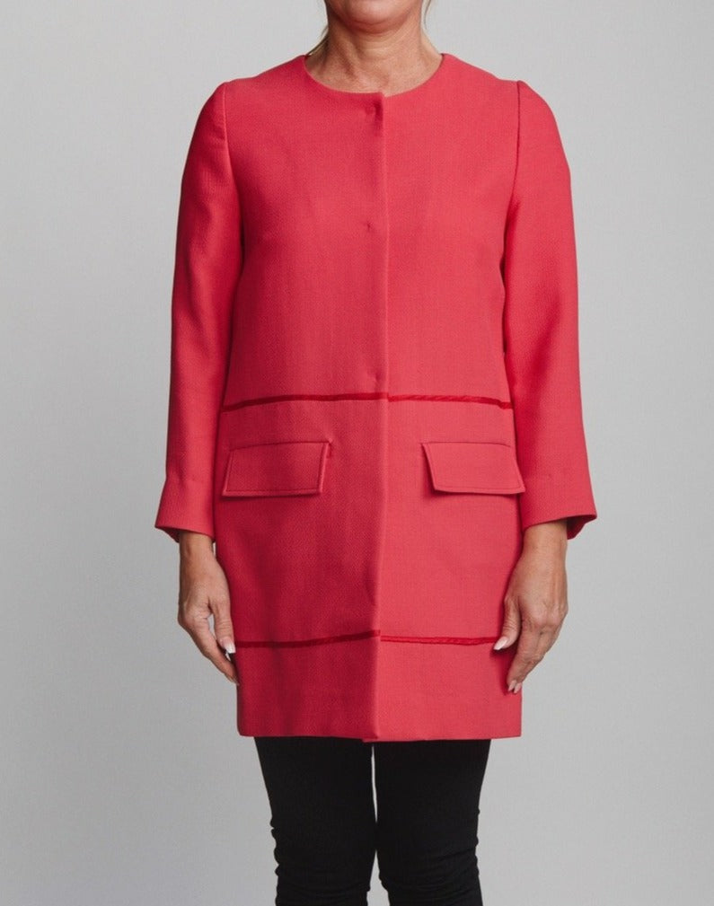 The unlined Leone coat with its’ sleek minimal design is a welcome update to your closet. With a slightly loose shape it will easily slip on over everything. Leone is detailed with oversized blocks that have flap and single welt pockets. The coat closes with snaps. The two piece sleeve gives a nice tailored fell and fit. You can elect to finish your inside seams with bias tape or simply overlock.