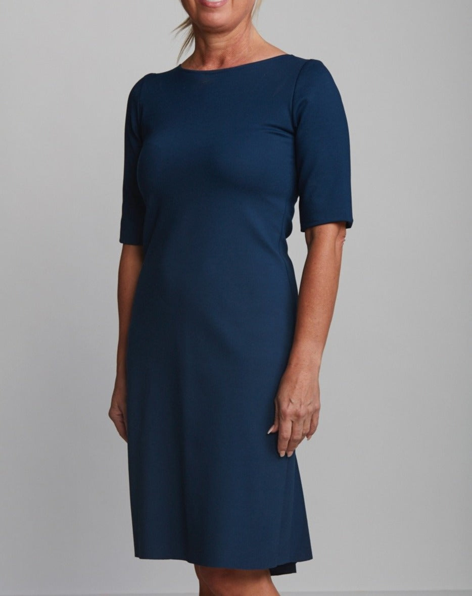 Your go to dress. Sleek and fuss free it'll become a staple in your closet. Wear it with a cropped denim jacket and flats for an easy everyday look or dress it up with a short booty for a little va va voom.